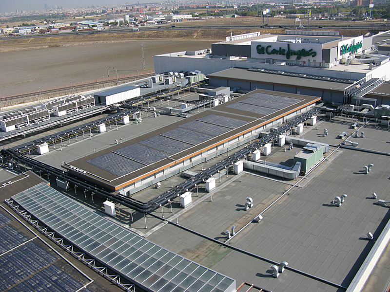 Planta solar fotovoltaica integrada en cubierta del Centro Comercial de UNIBAIL RODAMCO en Gavá (Barcelona).