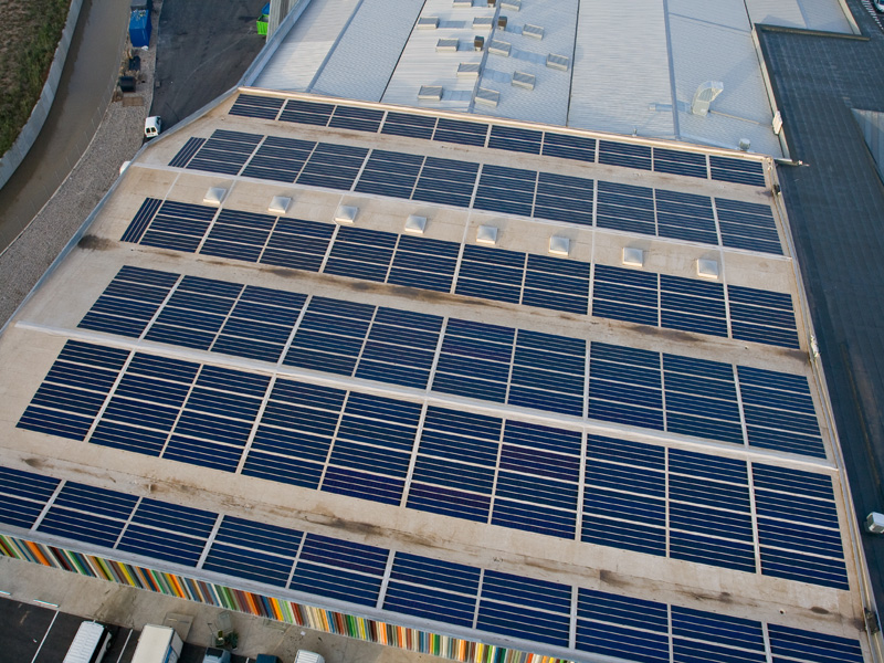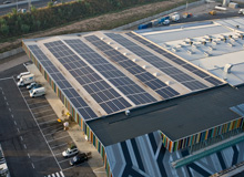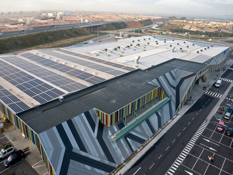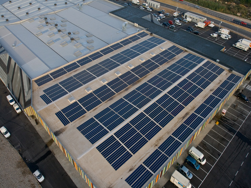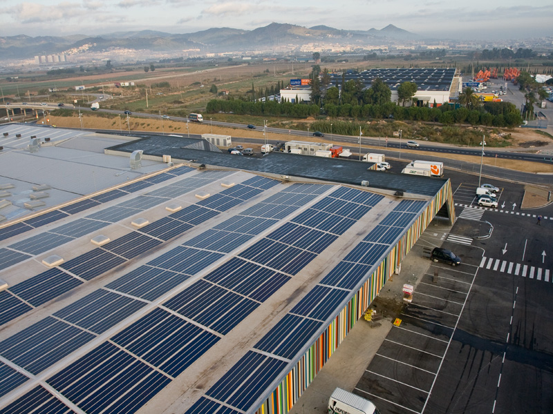 Planta solar fotovoltaica integrada en cubierta del Mercat de la Flor de MERCABARNA en Sant Boi de Llobregat.