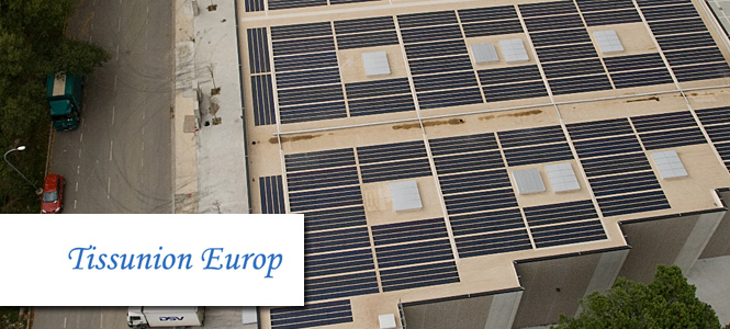 Planta solar fotovoltaica integrada en cubierta de la empresa TISSUNION EUROPE en Gualba .